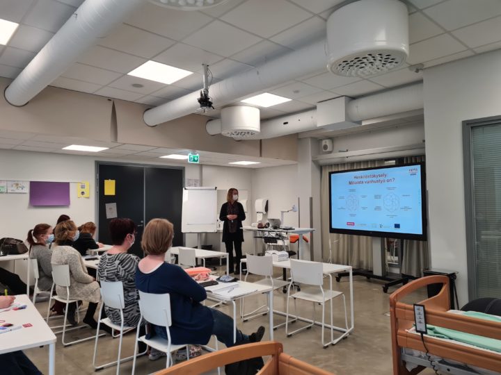 Pidimme kyseisiä infoja eri vuosikursseille, joissa oli osallistujia sekä Ikääntyvien hoidon ja kuntoutumisen – että Sairaanhoidon ja huolenpidon -osaamisaloilta, pääsääntöisesti Savon ammattiopiston Kuopion kampuksilla.