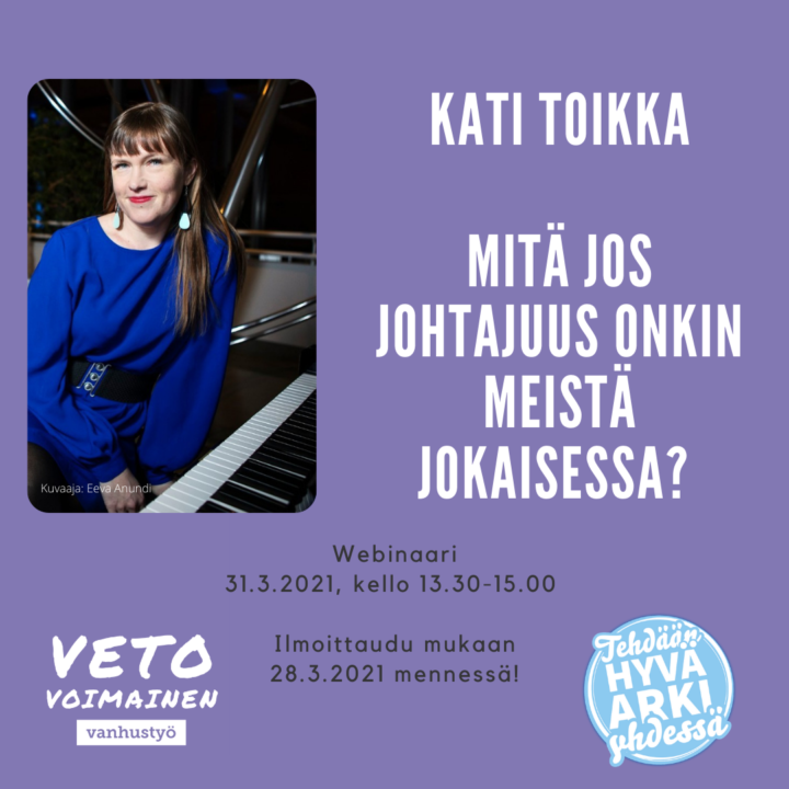 - Webinaari on tarkoitettu Vetovoimainen vanhustyö ja Vetovoimainen kotihoito –tehdään hyvä arki yhdessä –hankkeissa mukana oleville työyhteisöille, sekä alan opiskelijoille.