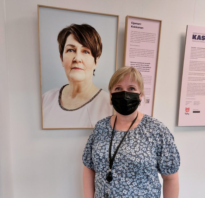 – Tällä hetkellä hoitajat käyvät suurta ja vakavaa taistelua omien oikeuksiensa puolesta. Tämä näyttely on osoitettu solidaarisuutena heidän oikeuksilleen. Toivon, että tarinat pysäyttävät myös teidät, ja saa meistä jokaisen miettimään sitä, kuinka koko hoitoala on se, joka pitää suomalaisen yhteiskunnan pystyssä, Koutaniemi sanoi avajaisiin nauhoittamassaan videotervehdyksessä.