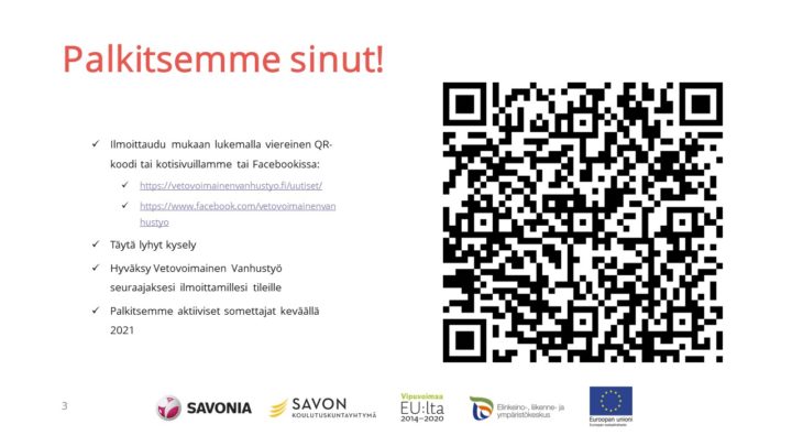 Rekisteröityneenä voit tallentaa vanhustyön vetovoiman itsearviointilomakkeen ja jatkaa täyttämistä myöhemmin.