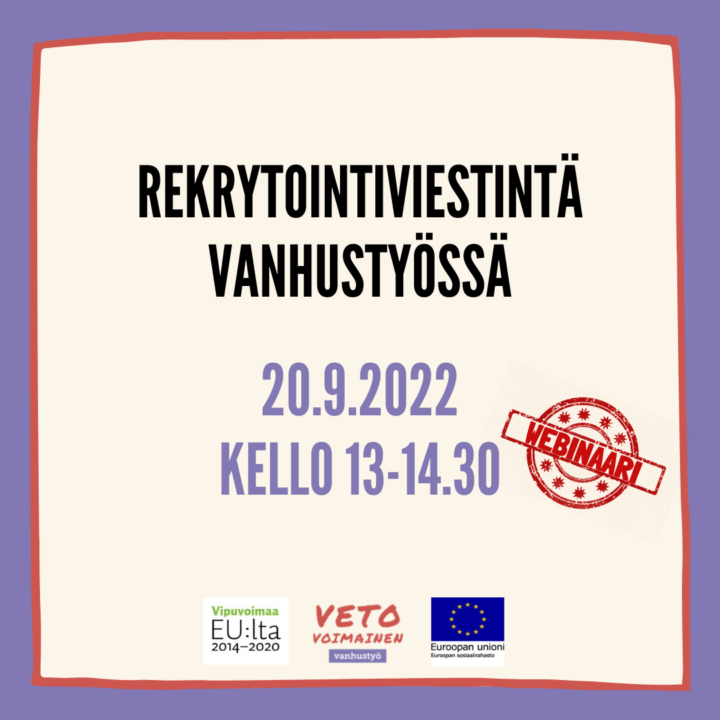 Vetovoimainen rekrytointi-ilmoitus vanhustyöhön. Saara Lähivaara 2022.
