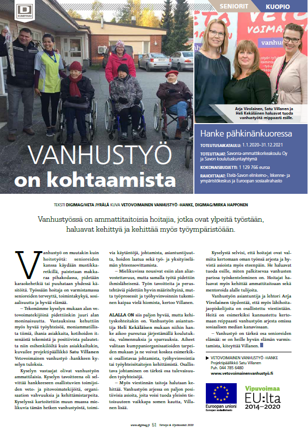 Vanhustyössä korostuu jatkuva oman ammattitaidon ylläpitäminen ja kehittäminen sekä vanhustyöhön liittyvä erityisosaaminen.